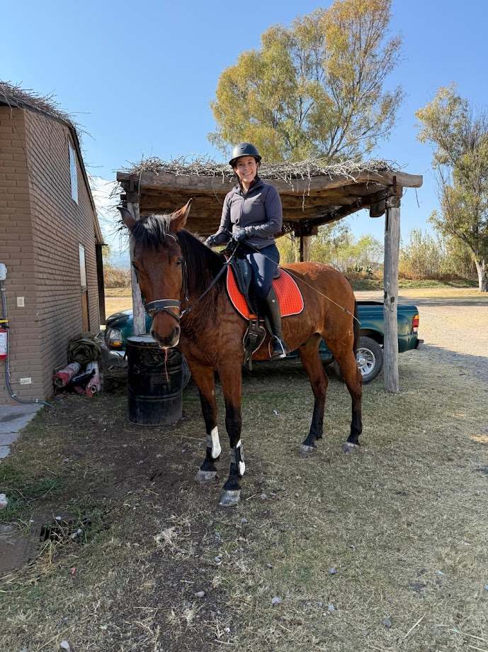 Show jumping experience competing in 1.00m–1.10m classes in Mexico (2021–2023). Training over 0.90m–1.00m courses, including gymnastic exercises. Dressage training and competition experience up to Second Level. Participant in the Equine Support International Clinic (2018). Experience with young horses, focusing on confidence building and correct mental development. Ability to ride and adapt to different types of horses. International riding experience at Queen Margaret’s School, Canada.