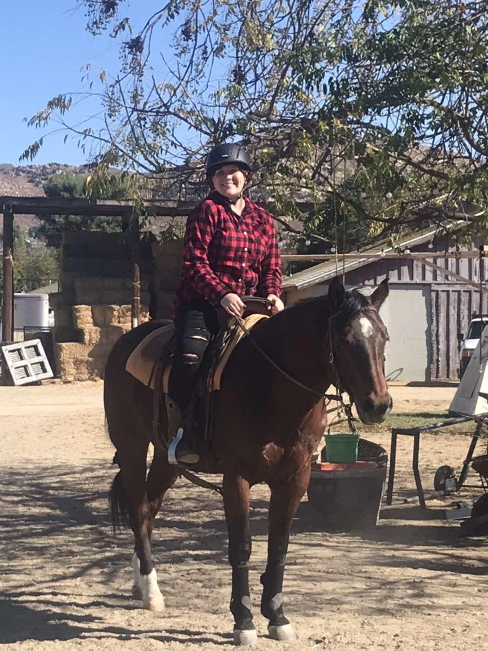 Grew up around horses, takes horseback riding lessons, works with horses. Grooming, bathing, tacking, untacking, lunging, teaching, riding. I have worked as a horseback riding instructor for almost 8 months now, and I was a trail guide for 4 months.
