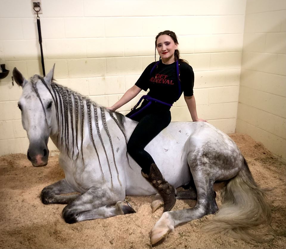 My duties on the job include feed, grooming, bathing, picking, mucking, dressing show horses, turn out, lunging, liberty, and riding English Dressage.