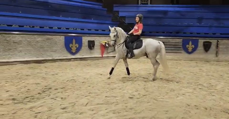 English Dressage and Western. Liberty, passage, piaffe, levade, the bow, and Spanish walk.