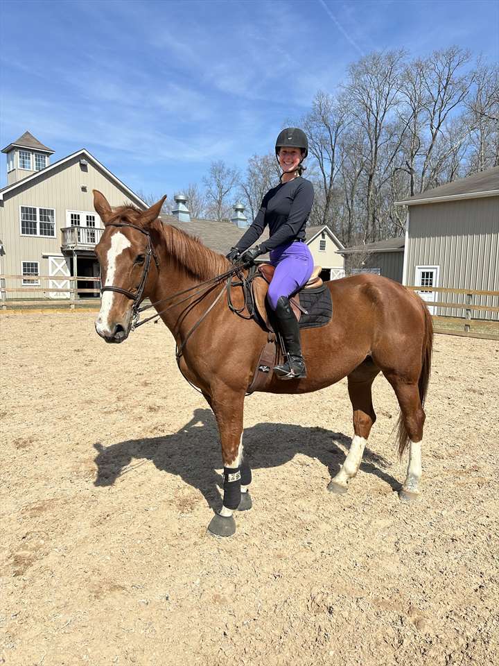 I’ve been riding since I was about 6 years old and I primarily ride English. Jumping is one of my favorite parts of riding. Over the years, I’ve participated in a few horse shows. I’ve also done some side jobs with horses, including turning them out, feeding, and mucking stalls. This past summer, I did an internship at a therapeutic riding barn, and I’ve helped with summer camps as well which included me helping with tacking and untacking before and after lessons, grooming, bathing the horses, and helping out with lessons here and there. At one point, I even half-leased a horse.